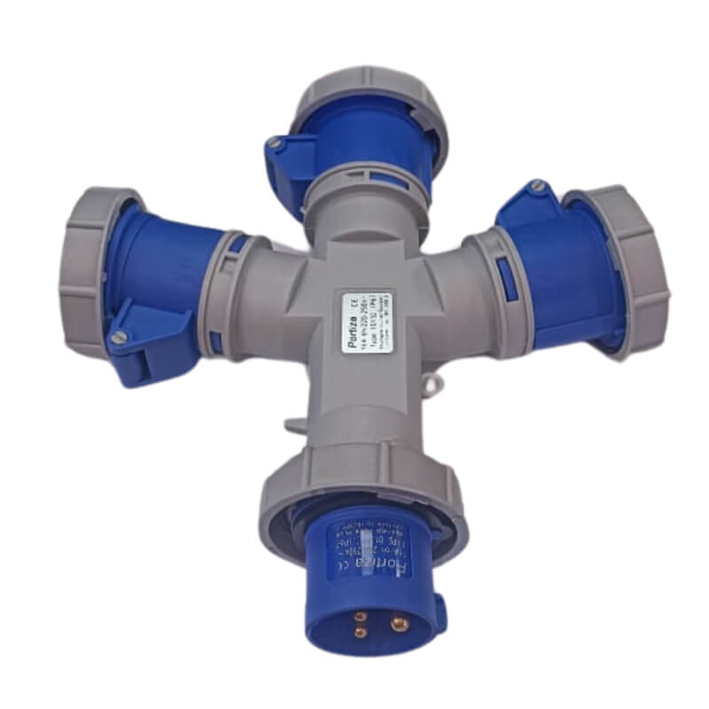 Marca: PORTIZA – Modelo: Derivación (500DI0991) Polos: 2P T – Posición horario: 6H – Corriente nominal: 16 A Tensión nominal: 220-250V – Frecuencia nominal: 50Hz Potencia máx.: 3500W – Grado de Protección: IP67